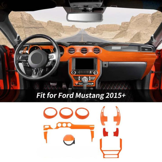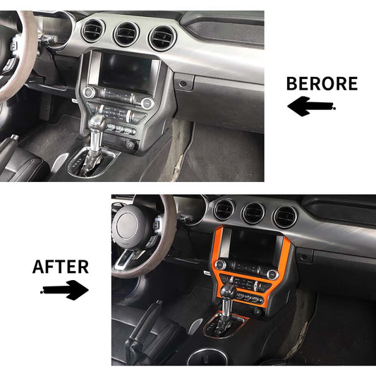 For 2015+ Ford Mustang 11 x Interior Center Console Trim Cover Kit OrangeFitment Fit for Ford Mustang 2015+ Specifications Brand: CheroCar Condition: 100 % Brand New Material: ABS/Aluminium alloy Color: As the picture show Manufacturer Warranty: 1 Year Package includes: 11pcs/set Interior Center Console Trim Cover Kit Features Made of high-quality materials. Designed and laser cut...