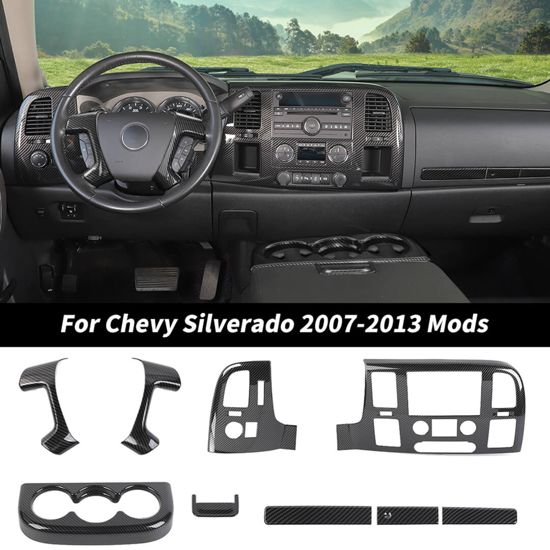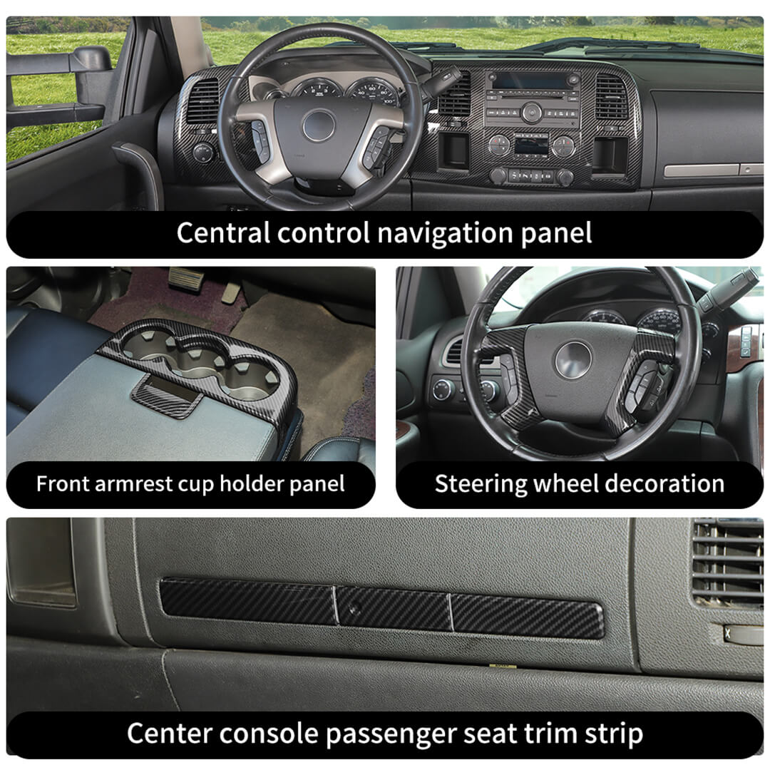For 2007-2013 Chevy Silverado/GMC-SIERRA Interior Center Console Steering Wheel Cup Holder Trim Cover Kit
