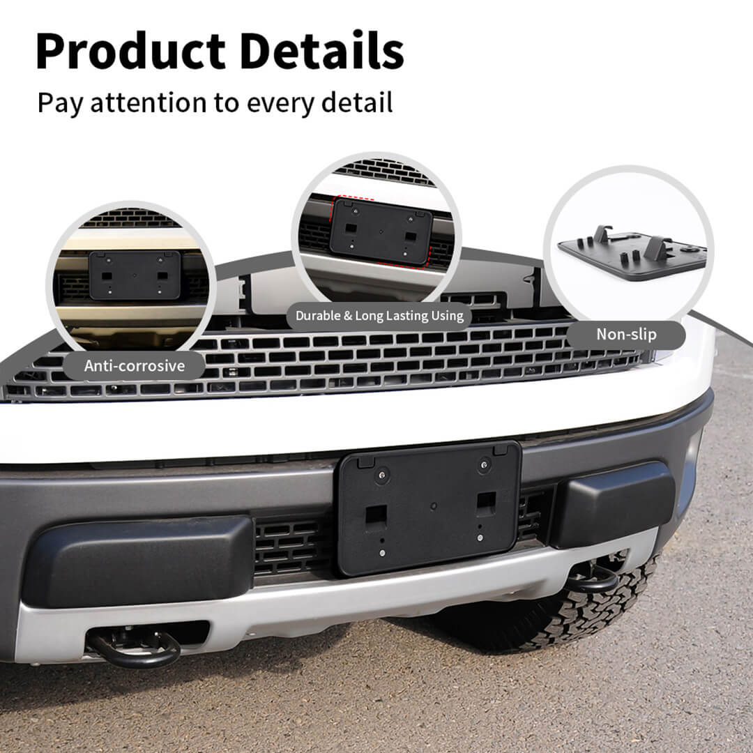 • Package includes: 1 x Front Bumper License Plate Mounting Bracket