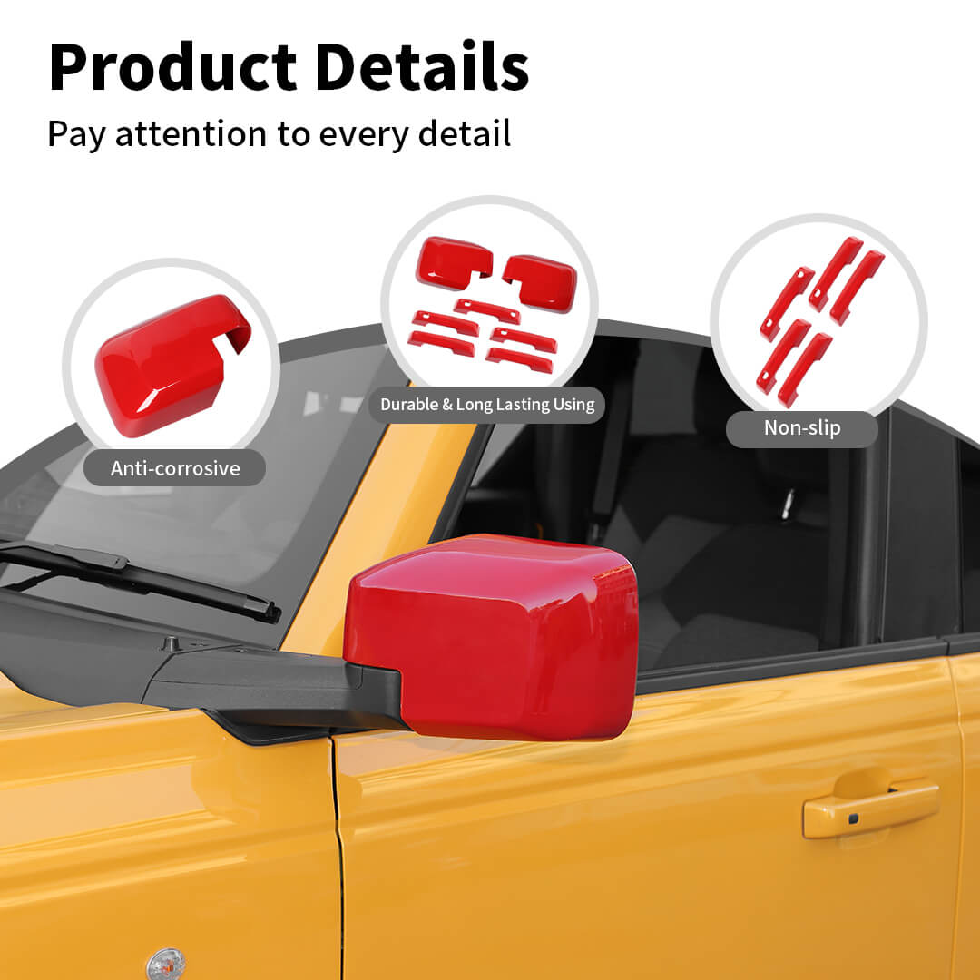 For 2021+ Ford Bronco Exterior Side RearView Mirror Shell Door Handle Trim Cover Kit