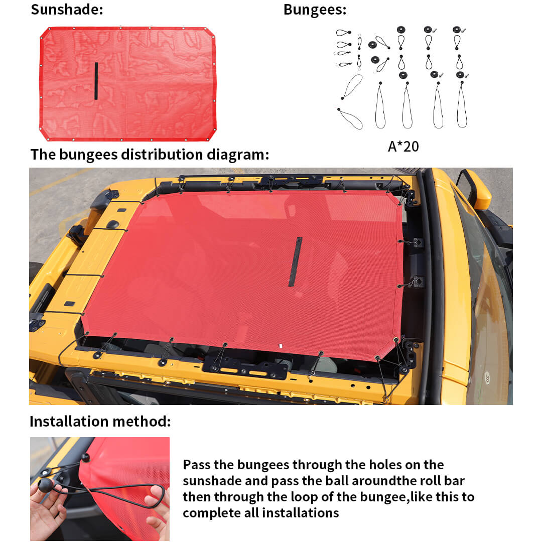 For 2021+ Ford Bronco Roof Insulation Net Mesh Bikini Top Sunshade Cover