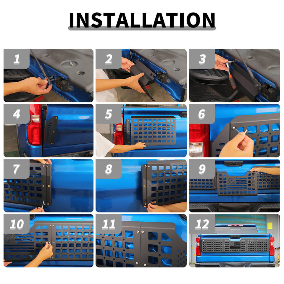 • Please read the installation manual carefully before installation. Need simple drilling for installation, comes with all needed accessories, installed in the tailgate position.