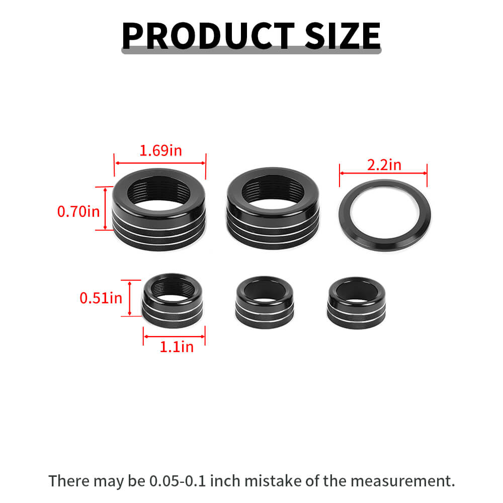 • Package includes: 6pcs/set Center Console 4WD AC Knob Adjust Ring Trim Cover