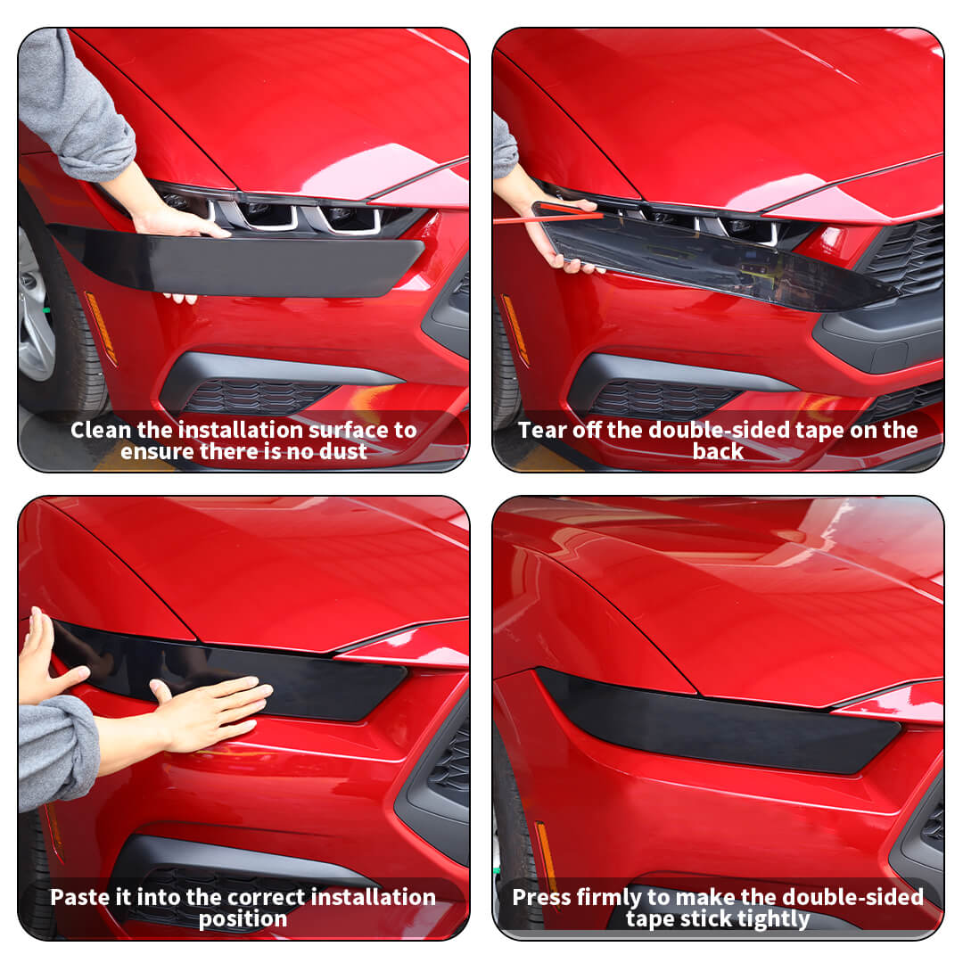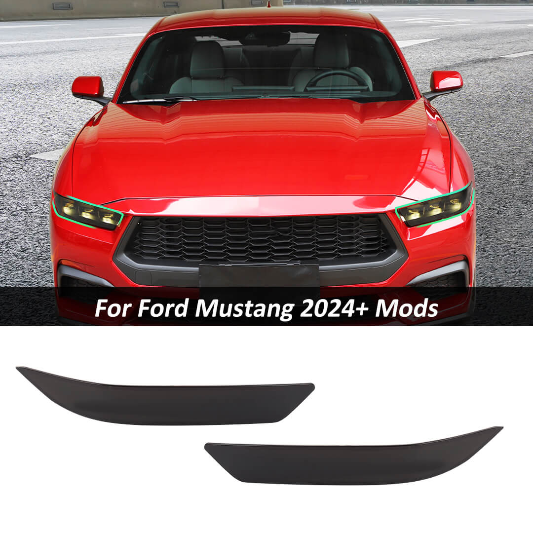 For 2024+ Ford Mustang Smoked Black Front Headlight Lamp Cover Trim Accessories