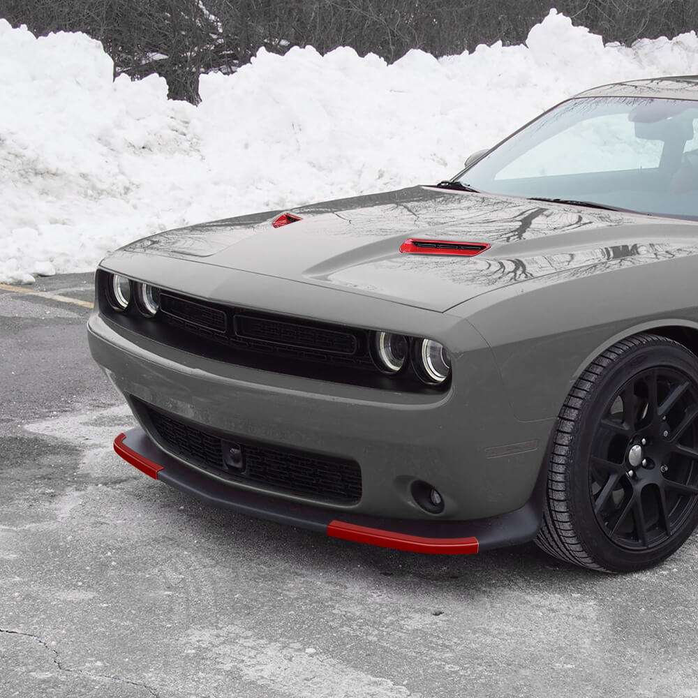For 2015+ Dodge Challenger Front Hood Scoop Air Vent & Bumper Lip Splitter Cover Trim Kit