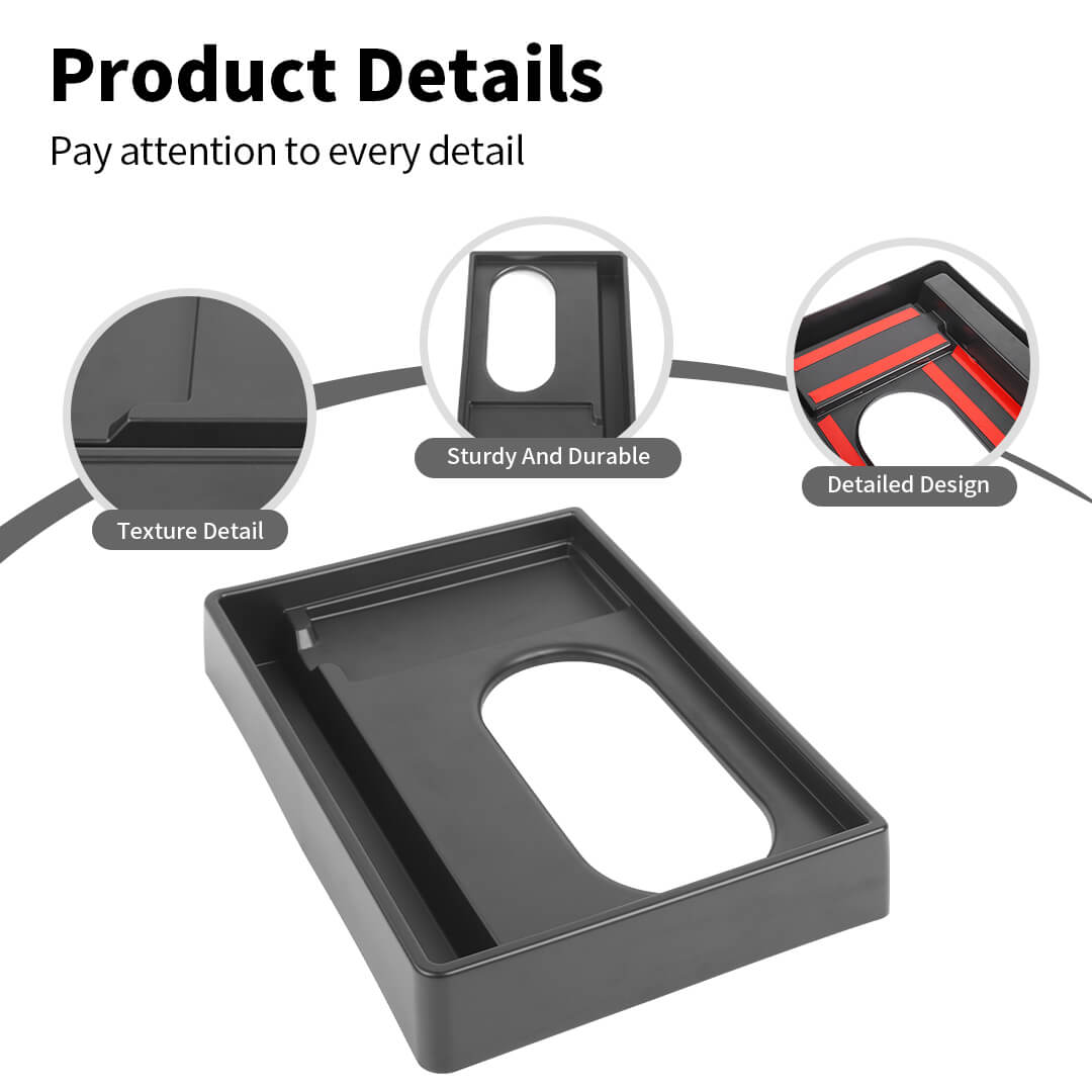 • The storage box is finished with black texture, so it is not only sturdy and durable but also the surface black texture structure can be well integrated with the car.