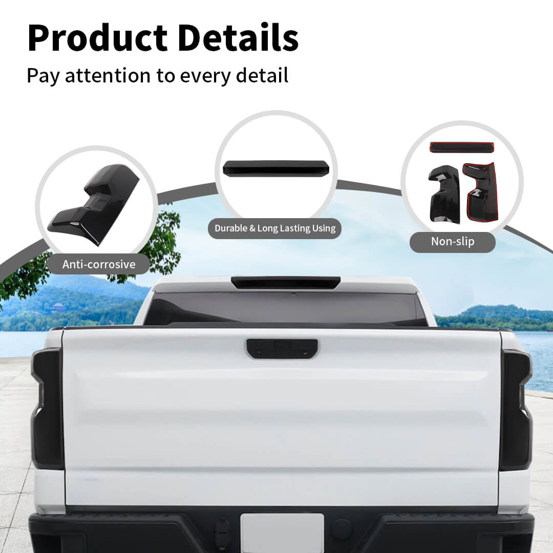 For 2022+ Chevy Silverado Smoked Black High Brake Light & Rear Taillight Lamp Trim Cover Kit
